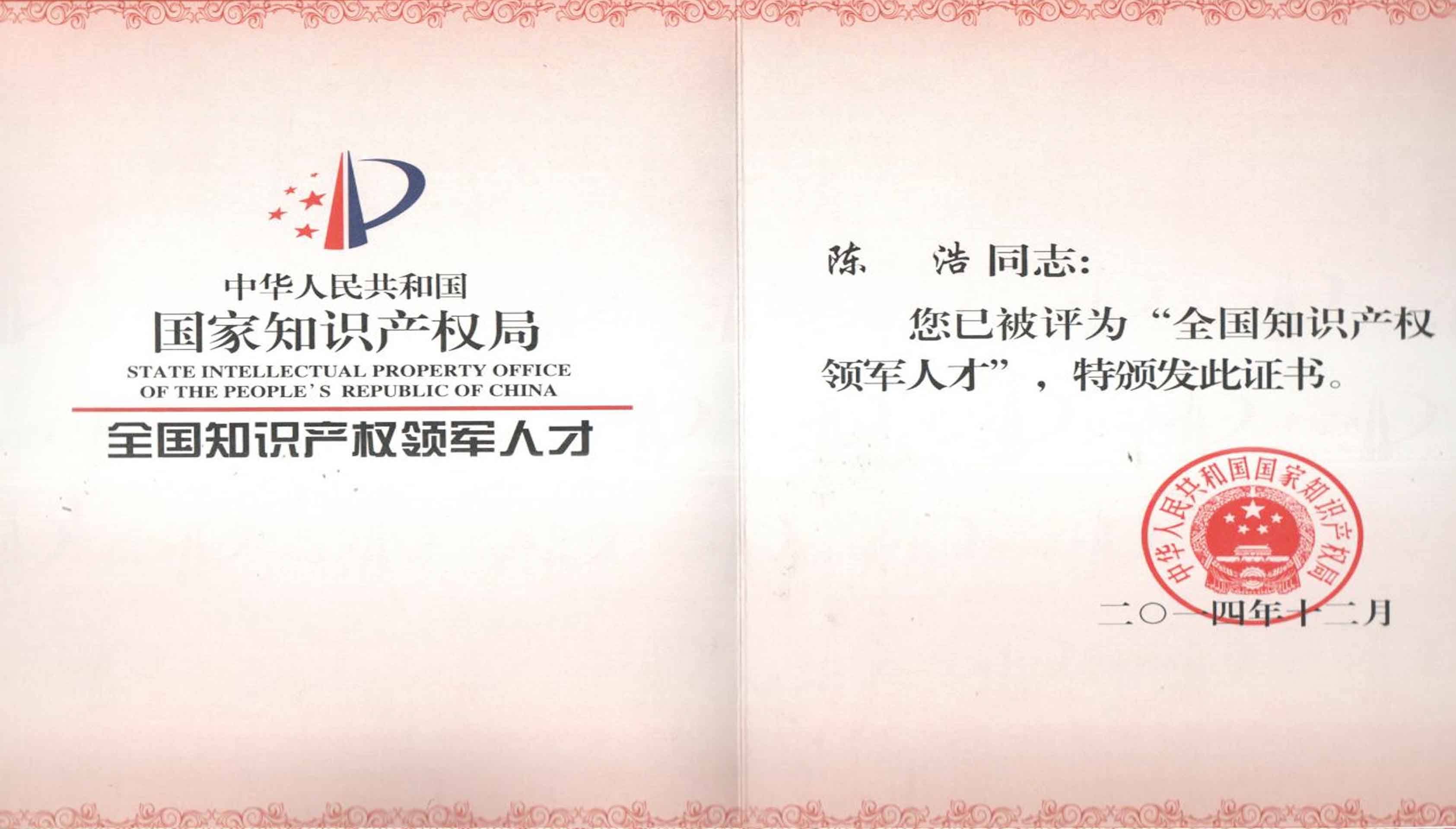 2014年12月公司資深代理人被評(píng)為“全國知識(shí)產(chǎn)權(quán)領(lǐng)軍人才”。 -