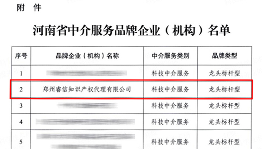 2023年6月鄭州睿信被評為河南省中介服務(wù)品牌龍頭標桿型企業(yè),名列省百家品牌企業(yè)(機構(gòu))第2名。